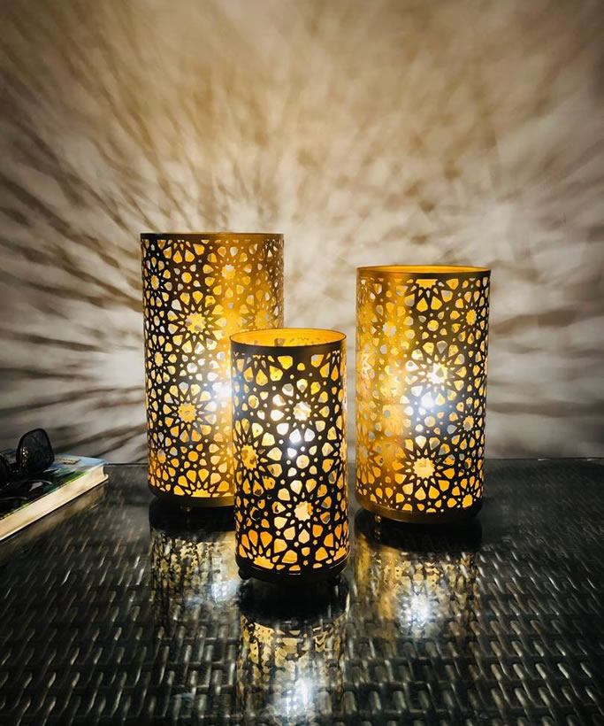 Turkish Mosaic Table Lamp Triple Medium Clear White Star